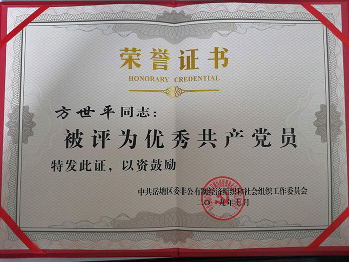 7月2日,方世平被評為岳塘區(qū)“優(yōu)秀共產黨員”